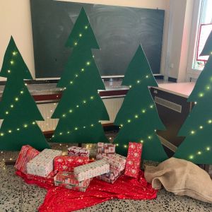 Trotz der turbulenten Zeit, haben wir unsere Schule weihnachtlich geschmückt. Jedes Kind hat eine Weihnachtskugel gestaltet. Dabei ist dieses wunderschöne Fensterbild entstanden.