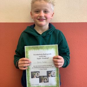 Emils Graskopf konnte mit seinem Besuch beim Friseur überzeugen. Er hat sich gegen 160 weitere sehr kreative Grasköpfe durchgesetzt.