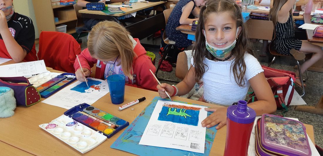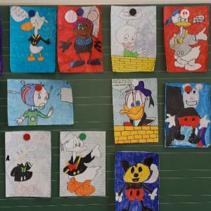 Zu jedem Thema haben wir Symbole gemalt. Dann sollten wir zwei oder drei Figuren und ein passendes Symbol zu unserem Thema auswählen und ein Bild malen. Es sind viele tolle Bilder geworden.