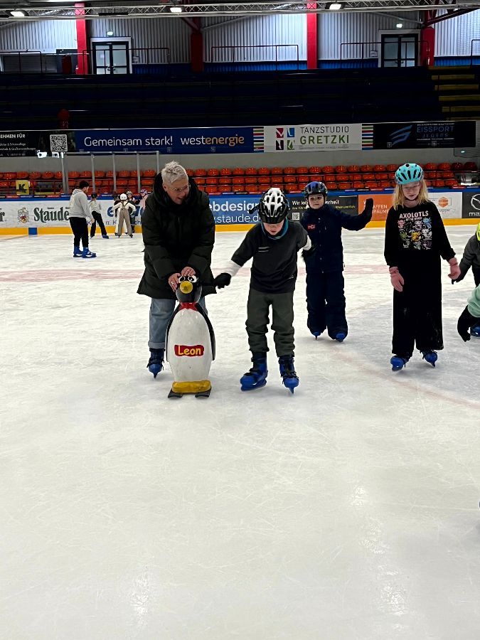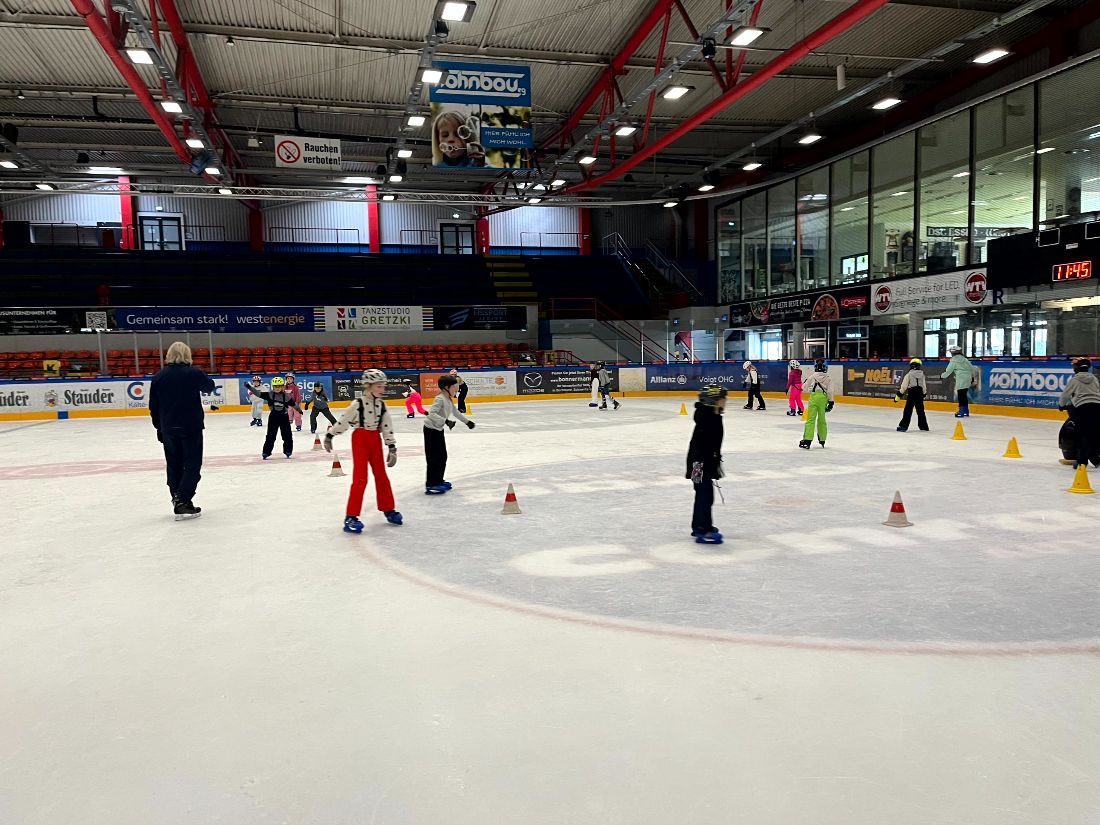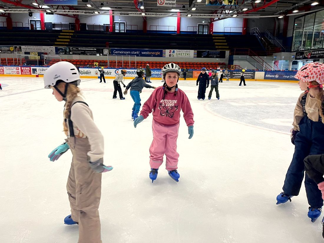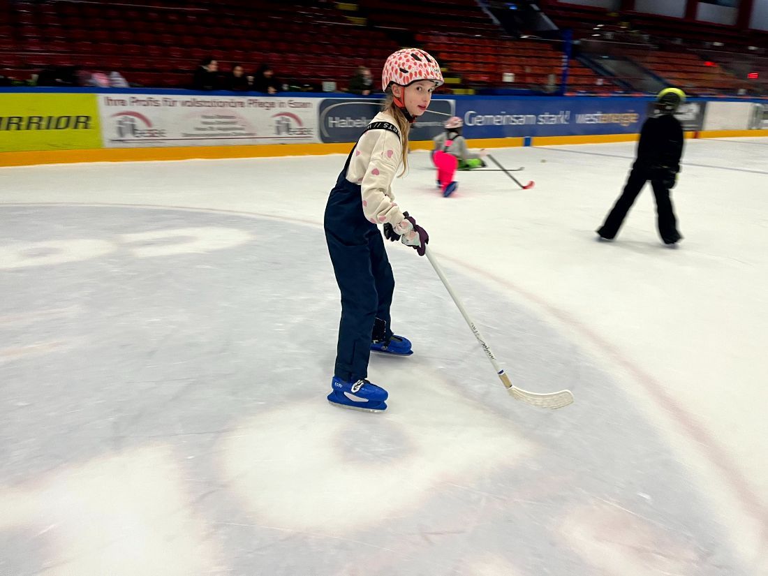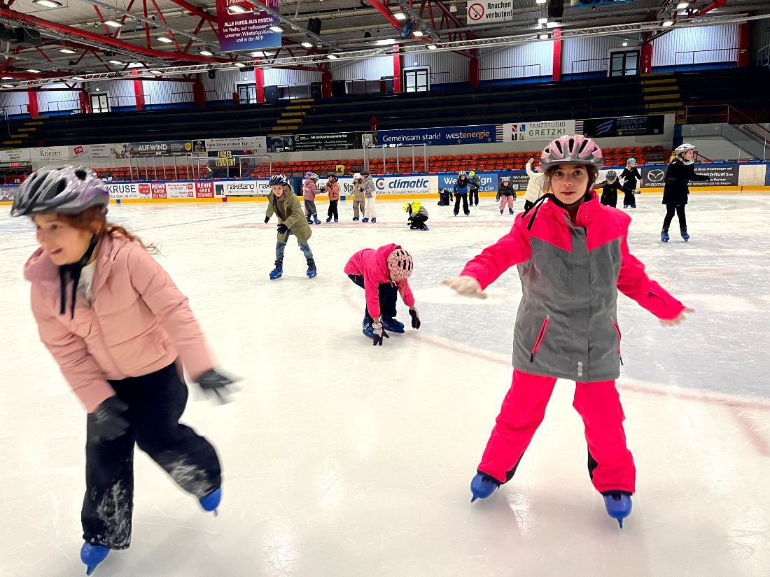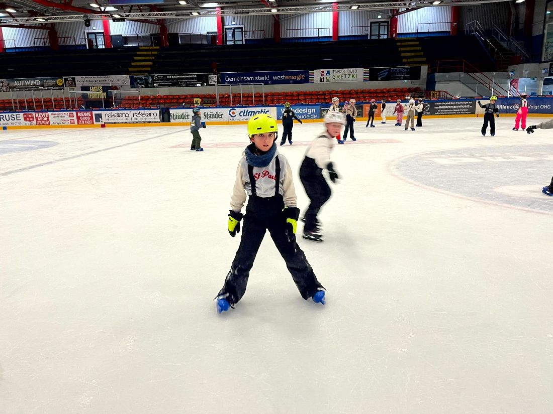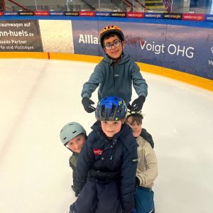 Nach dem Anziehen der Schlittschuhe ging es für alle aufs Eis – manche standen zum ersten Mal auf Kufen, andere drehten schon sicher ihre Runden. Mit viel Freude, Teamgeist und gegenseitiger Unterstützung wurden schnell Fortschritte gemacht. Besonders schön war es zu sehen, wie sich alle gegenseitig halfen und gemeinsam lachten.