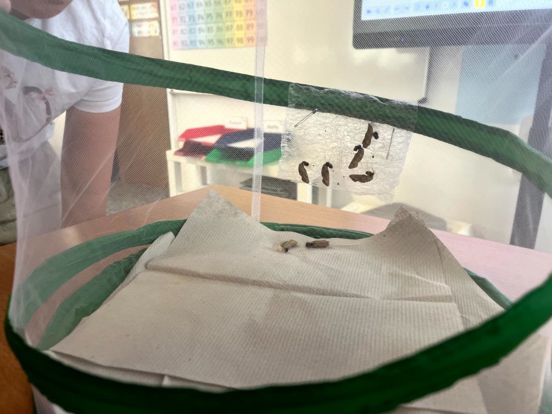 Zuerst beobachteten die Kinder kleine Raupen, die täglich größer wurden. Mit großem Interesse verfolgten sie, wie sich die Raupen verpuppten. Nach einiger Zeit war es dann so weit: Die ersten Schmetterlinge schlüpften! Besonders beeindruckend war es zu sehen, wie sich die Flügel langsam entfalteten.