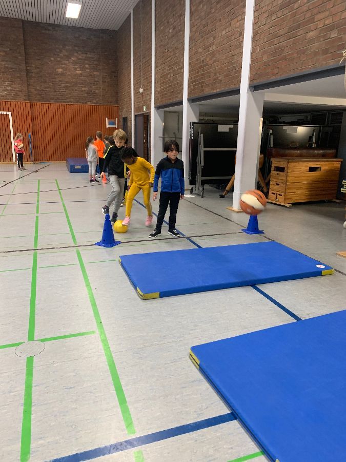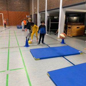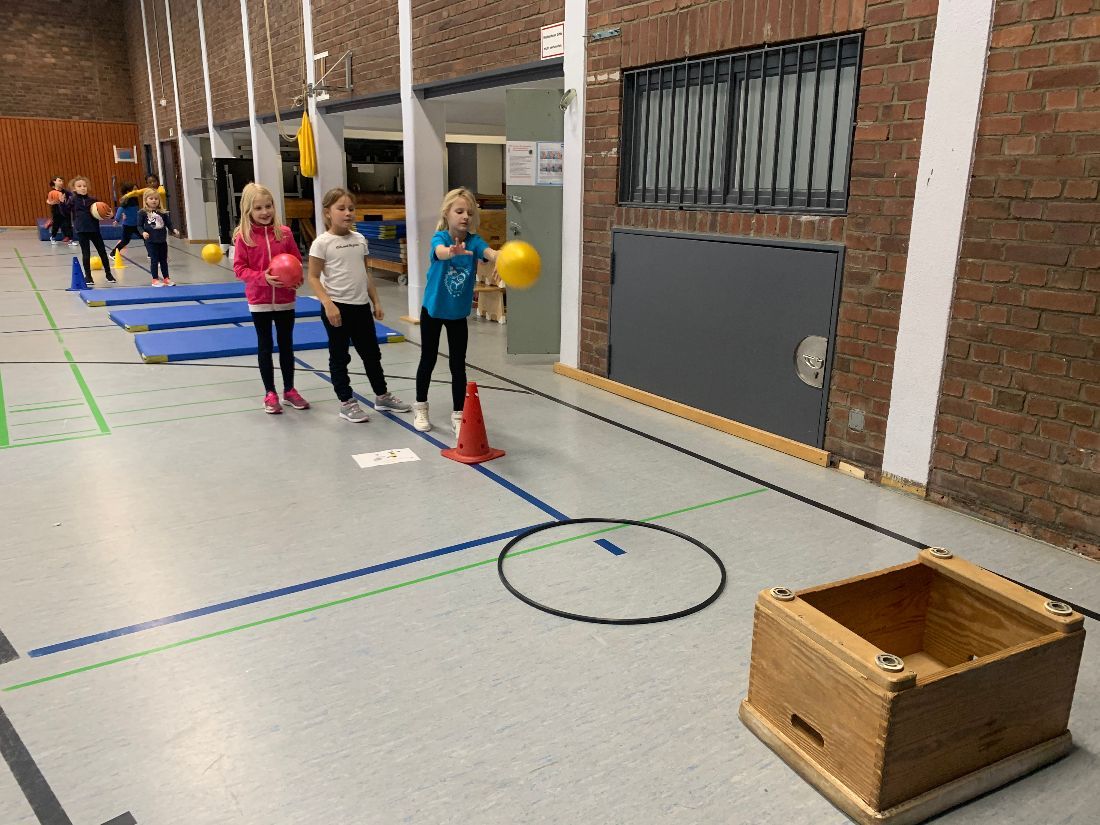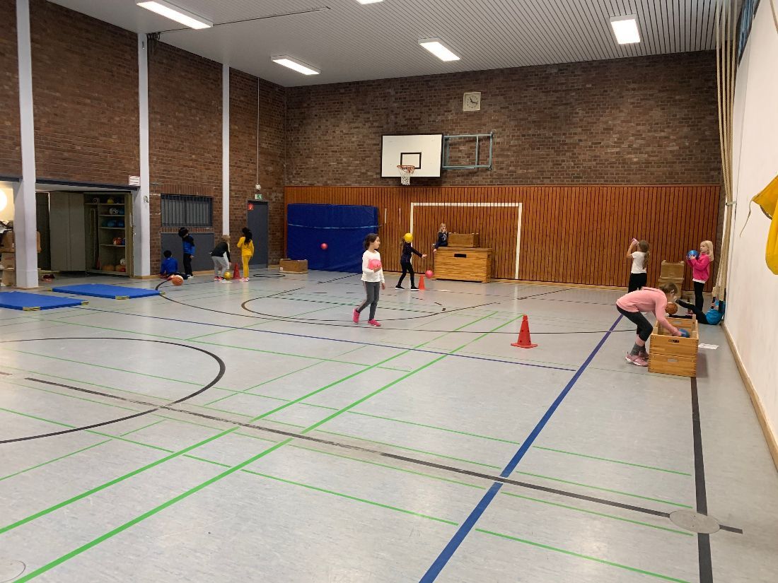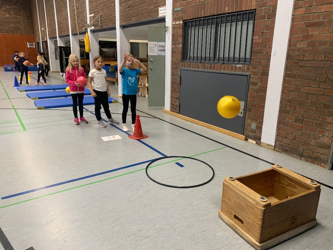 An verschiedenen Stationen haben wir im Sportunterricht Handballgolf gespielt. Es hat uns allen viel Spaß gemacht.