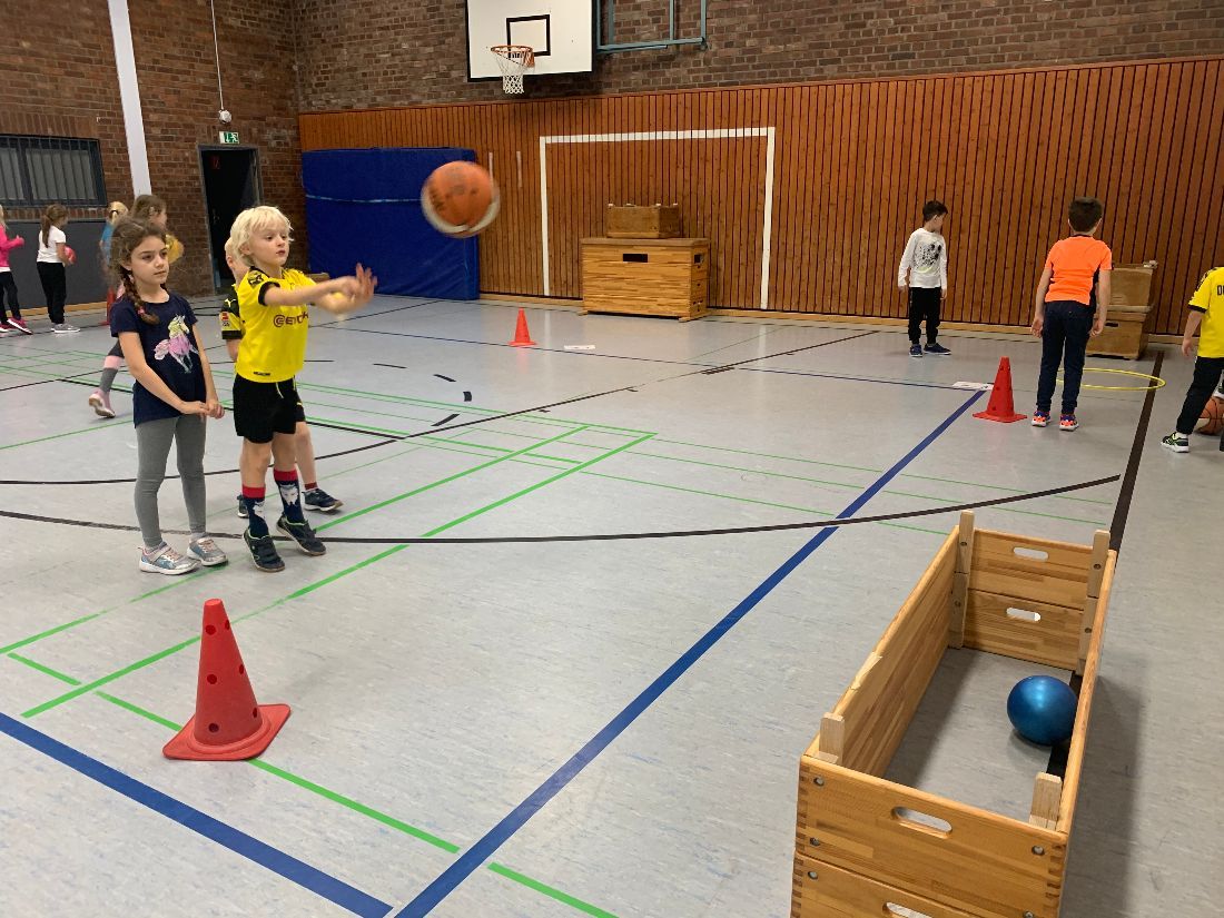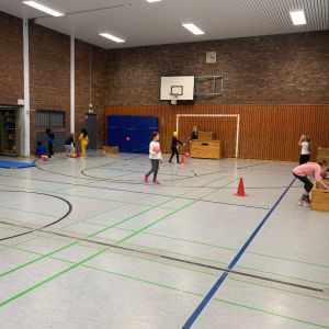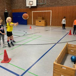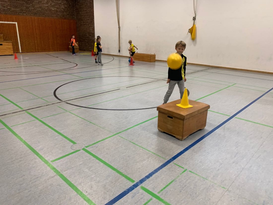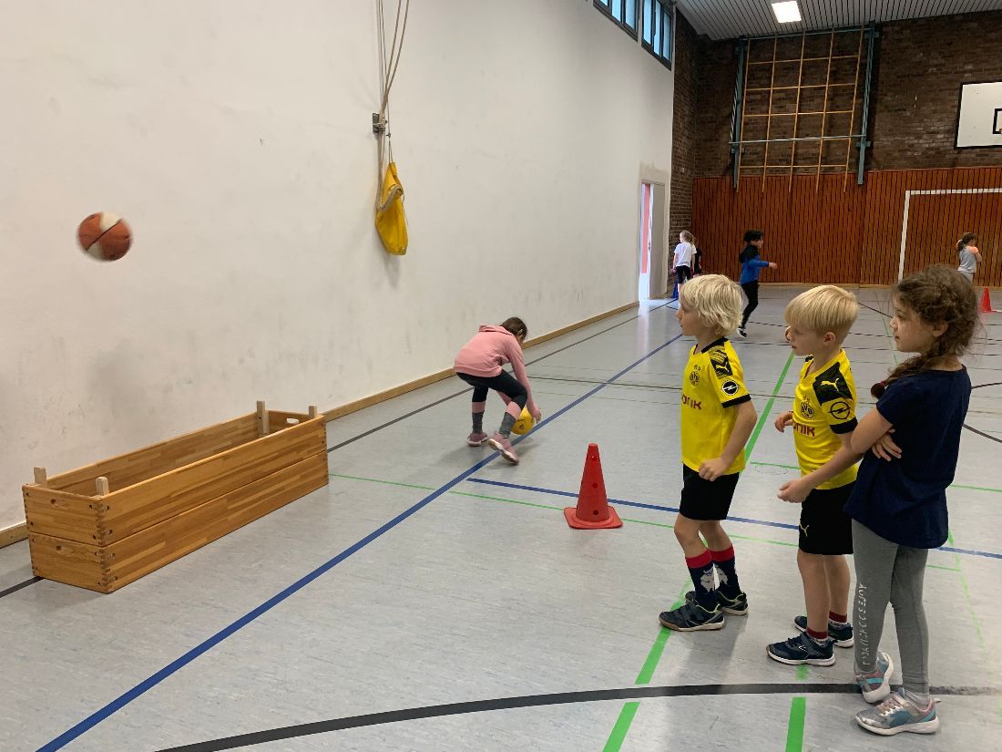 An verschiedenen Stationen haben wir im Sportunterricht Handballgolf gespielt. Es hat uns allen viel Spaß gemacht.